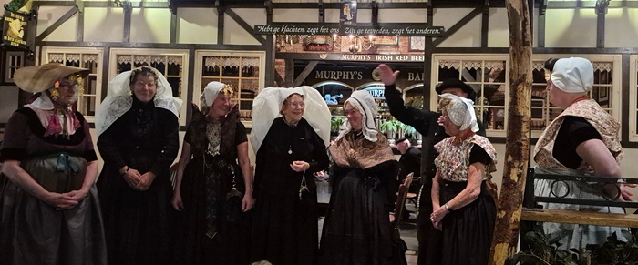Op 10 oktober verzorgen we een optreden in ’s Heerenhoek, Spek mie Stroop. Een reisgezelschap bestaande uit een bus met dames en een buschauffeur genoten van een drankje, soep en een warme maaltijd. Tussendoor was er een klederdrachtpresentatie en een optreden van de babbelaargroep.